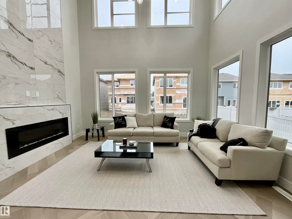Welcome to this BRAND NEW home w/a TRIPLE ATTACHED GARAGE in Ardrossan’s growing family friendly community! This impressive property offers modern finishes,a bright open floor plan,& a MAIN FLOOR den offering a flex space w/potential for a bedroom or office, w/a half bath, perfect for guests or working from home. The grand living room welcomes you w/an open to above design, leading to a spacious dining area & a chef inspired kitchen, complete with custom cabinetry, QUARTZ countertops, a large island, & a walkthrough SPICE KITCHEN/BUTLER’S PANTRY. Upstairs, find 4 bedrooms, a bonus room, & a convenient laundry room. The primary retreat includes a tray ceiling, large walk in closet, & a spa like 5 piece ensuite w/a custom shower, soaker tub, & dual sinks. With a SEPARATE SIDE ENTRANCE to the unfinished basement, there’s potential for future income. Ready for a quick possession just in time for the holidays. Ready for immediate possession!